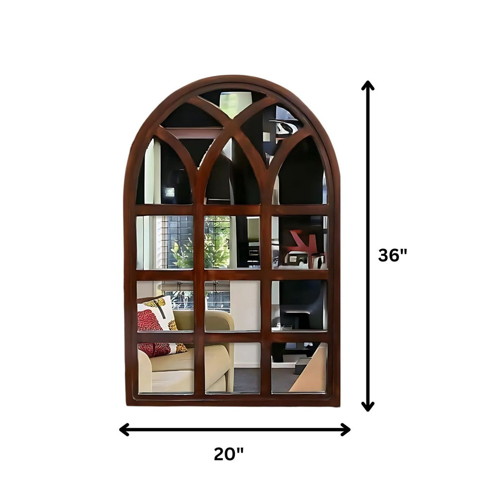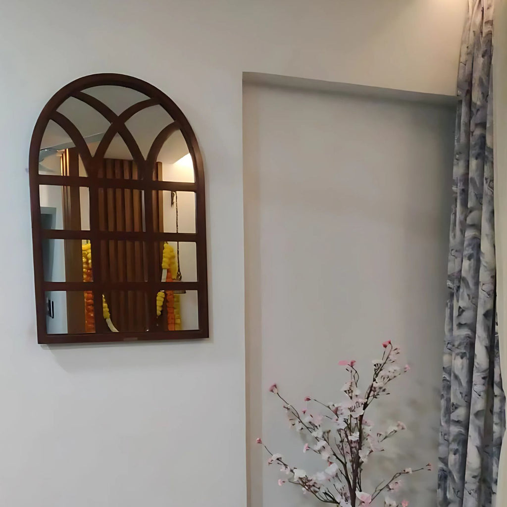 Elevate your home decor with this beautifully crafted Arched Wooden Wall Mirror. Featuring a graceful arch design and paneled sections, this mirror brings a touch of timeless elegance to any space. The rich wooden frame adds warmth, while the reflective glass enhances light and creates the illusion of a larger room. Ideal for living rooms, hallways, bedrooms or entryways, this piece combines beauty and functionality for a stunning focal point in your home.