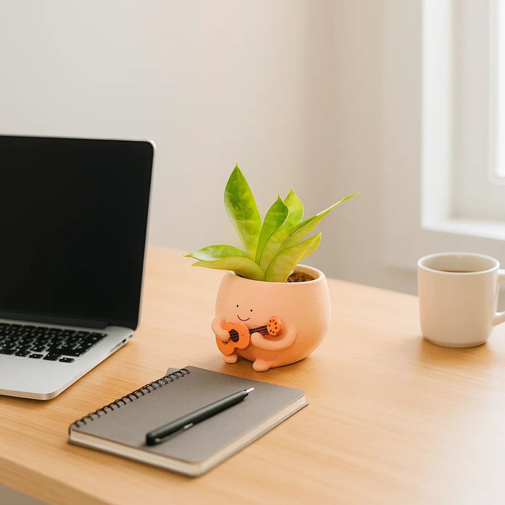 Bring music, greenery, and cheer to your space with The Jazzy Planter. This adorable planter, designed with a smiling face and a cute guitar detail, adds a fun and lively touch to your desk, balcony, or living room. Perfect for succulents, small houseplants, or even artificial greens, it is an instant mood-lifter and conversation starter.