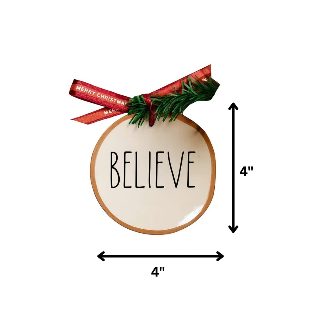 Handcrafted Ceramic "BELIEVE" Christmas Tree Hanging Festive Ornament